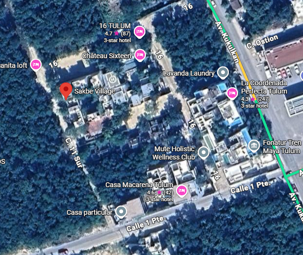 Hun Sakbe Villa is located near the center of Tulum Pueblo, approximately two blocks from Kukulkan Avenue which is one of two main roads that leads to the beach.